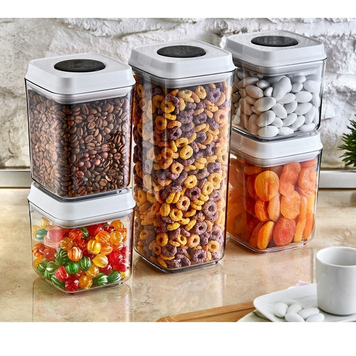 - Ideal pentru organizare – Potrivit pentru faina, zahar, cereale, nuci, biscuiti, granola etc.