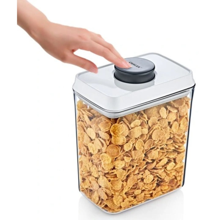 Recipient hermetic pentru alimente CRALEX Nesta, 2,2 L, Alb, Cu buton de sigilare, Fara BPA, Rezistent la apa