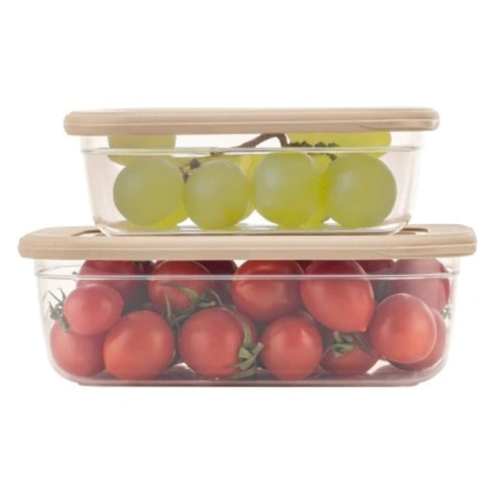 Set 2 Recipiente Alimentare Dreptunghiulare CRALEX® Tosca, Bej (3x670ml, 3x1200ml) | Depozitare etansa, Organizare si Transport Mancare | Compatibil cu Cuptorul cu Microunde si Congelatorul