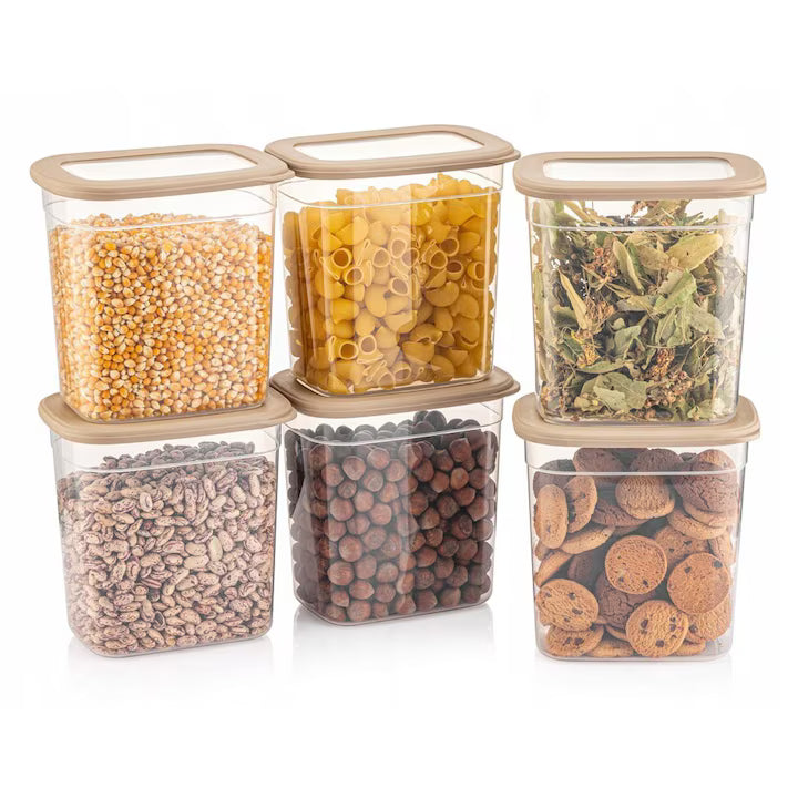 Set 6 Recipiente Alimentare CRALEX Tosca - 2L, Stivuibile, Fara BPA, Bej